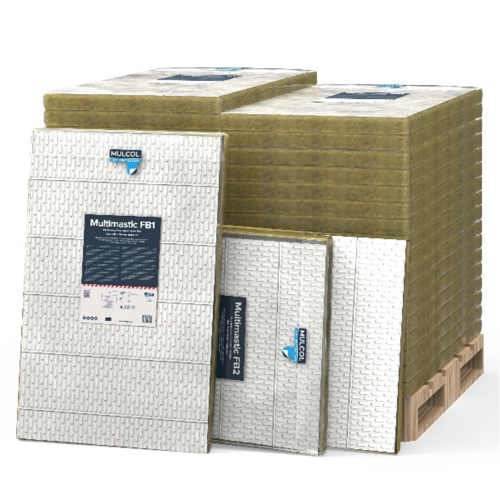 - Multimastic FB1 en Multimastic FB2 zijn brandschotten bestaande uit een steenwol kern met een hoge densiteit, aan één- of twee